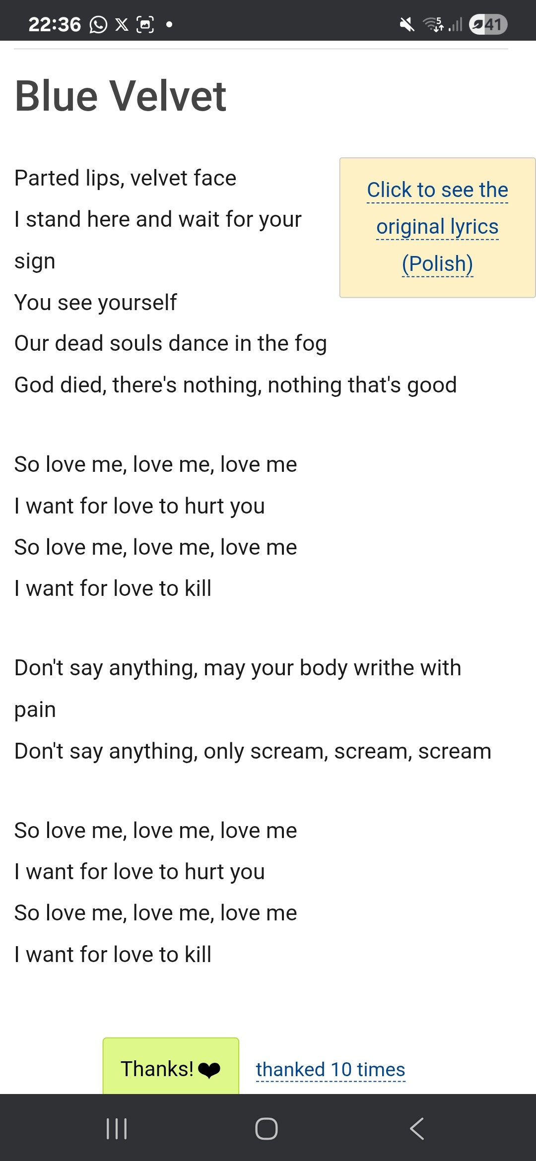 BLUE VELVET HA PROPRIO UN BEL TESTO se sei emo #animatormentata #strangersfromhellcore
