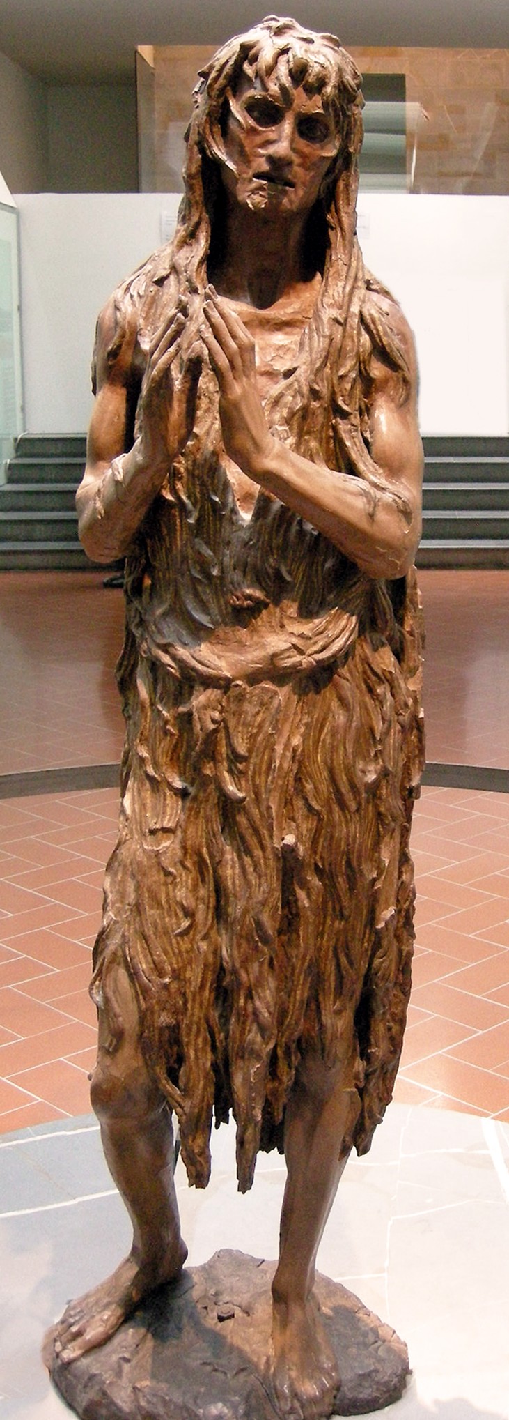 TecnicaDonatello ha utilizzato una tecnica mista per creare quest'opera. Ha intagliato il legno per creare la forma generale della figura e poi ha aggiunto dettagli con stucco e pittura. La scultura è stata anche dorata con foglie d'oro per enfatizzare i capelli e gli occhi.