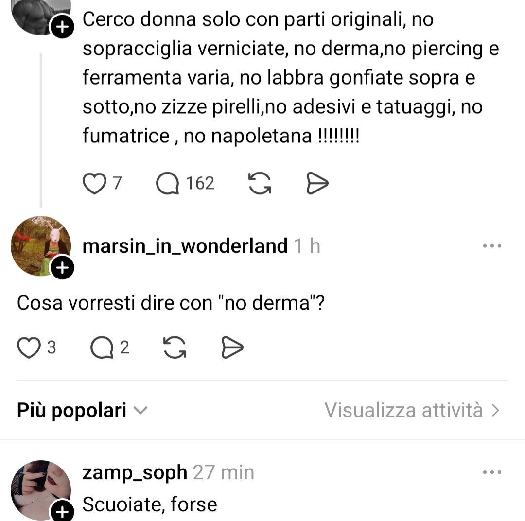 Ma guarda tu se devo gbeder3 i tiktok dove la gente dice meloni è una donna bellissima peccato che è fasciata io NON CI STO è assurdo che ae la gente viene a dire in faccia che sono brutta e poi lei è "bellisima" ma se io la moggo allora se i gusti della gente sono questi grazie al cazzo che sono brutta