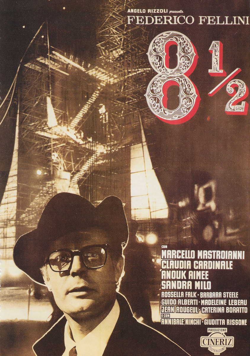 Guido Anselmi si ritrova senza idee: a partire da questa situazione il rinomato regista porta lo spettatore nella sua realtà fantarealistica, fatta di ricordi, sogni, amori, visioni e indecisione. Il protagonista si ritrova oppresso dalle grinfie di un critico eccessivamente accademico e fintamente intellettuale, dal produttore assillante e dalla società che brama per un suo nuovo film. Ma Guido non fa nulla per cercare attivamente una soluzione: egli molto semplicemente vive, lascia che le cose succedano, passeggia, incontra donne e amici, prende ispirazione da cosa accade e accetta la confusione della sua vita. Guido riesce finalmente a riconciliarsi con la sua vita e con la sua realtà. Fellini è Guido, il maestro crea così il suo ottavo film e mezzo: un capolavoro (secondo me nel vero senso della parola in questo caso) metafisico che fonde la dimensione onirica a quella reale, come ogni film di Fellini del resto.