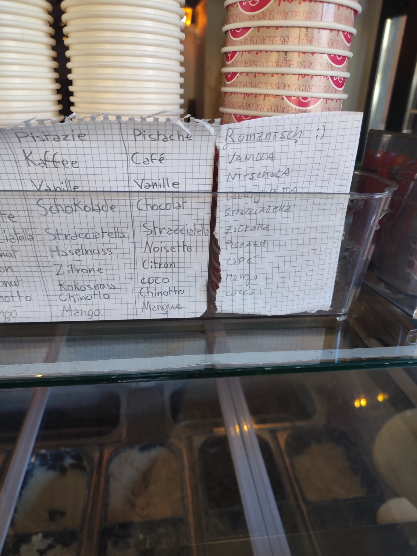 (lavoro in un ristorante in svizzera) ho messo anche il romancio sulla lista dei gusti. Nessuno ha apprezzato 🥺 però non ho messo il francese suca Ginevra