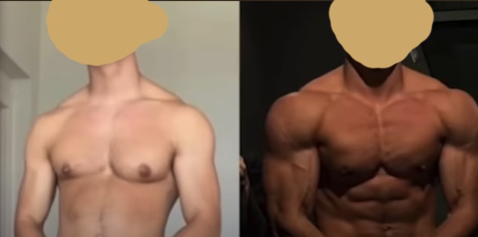 In soli 15 giorni. Lui si allenava già. Questo è grazie al doping. Lui era già come nella parte destra dell'immagine, poi ha smesso di doparsi ed è diventato come nella parte sinistra, poi ha ripreso ed in soli 15 giorni è ridiventato come a destra.