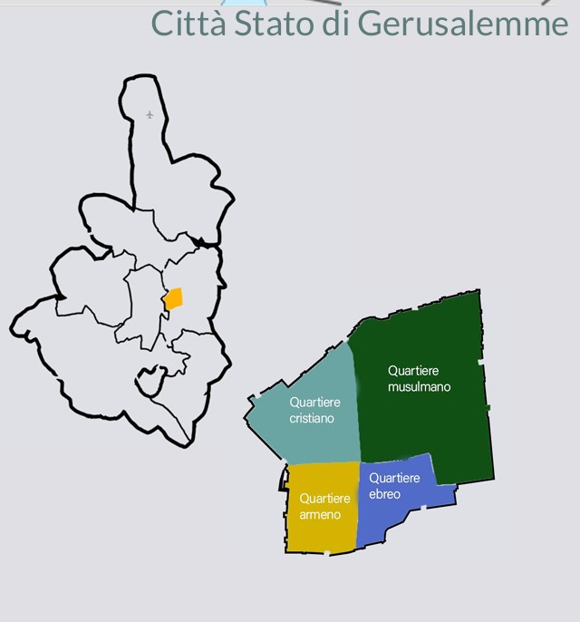 Lo Stato di Gerusalemme controlla il Mar Morto.1. Quartiere Musulmano: L'area più grande con il complesso della moschea di Al-Aqsa.