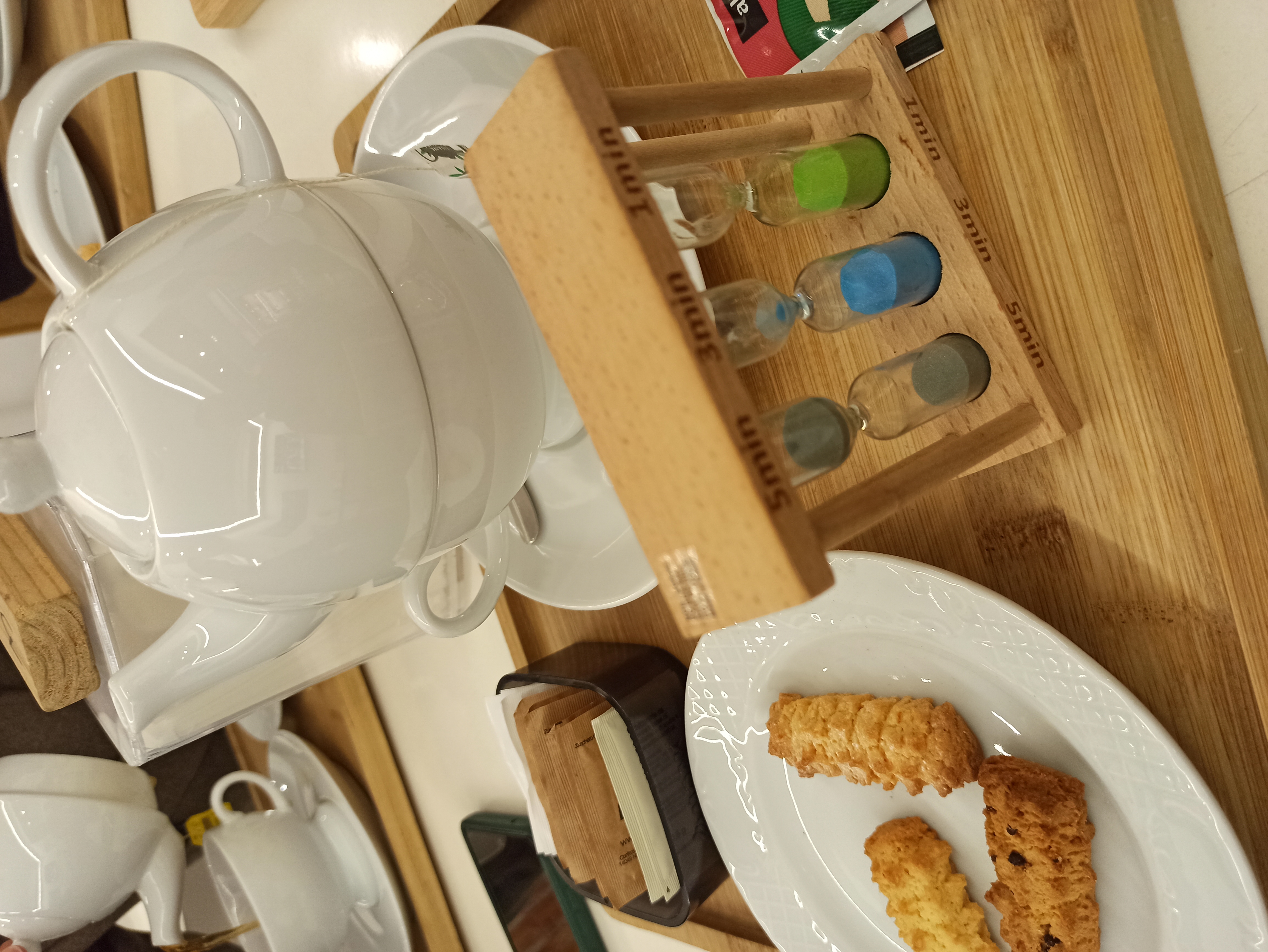 Comunque oggi pomeriggio volevamo prenderci qualcosa di caldo in un bar e guardate che bel vassoio con la teiera sopra la tazza e le clessidre per tenere il tempo dell'infusione