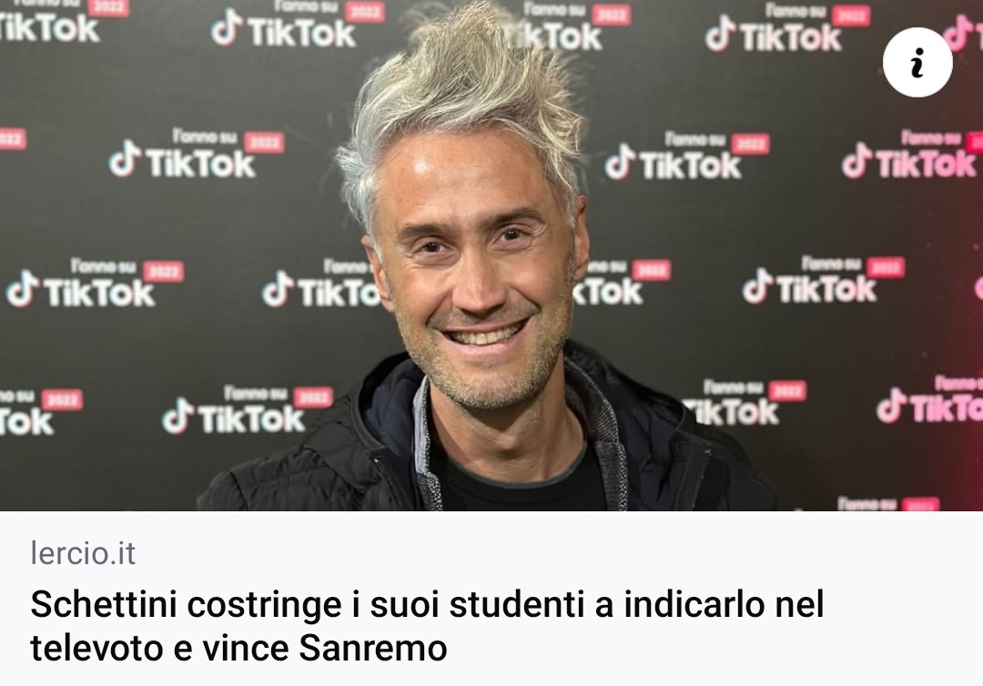 E comunque se Sal riesce a far passare l'immagine di napoletano genuino che ama l'Italia e ama la sua città penso possa non disastrare all'Eurovision. A patto che accetti, ovviamente.