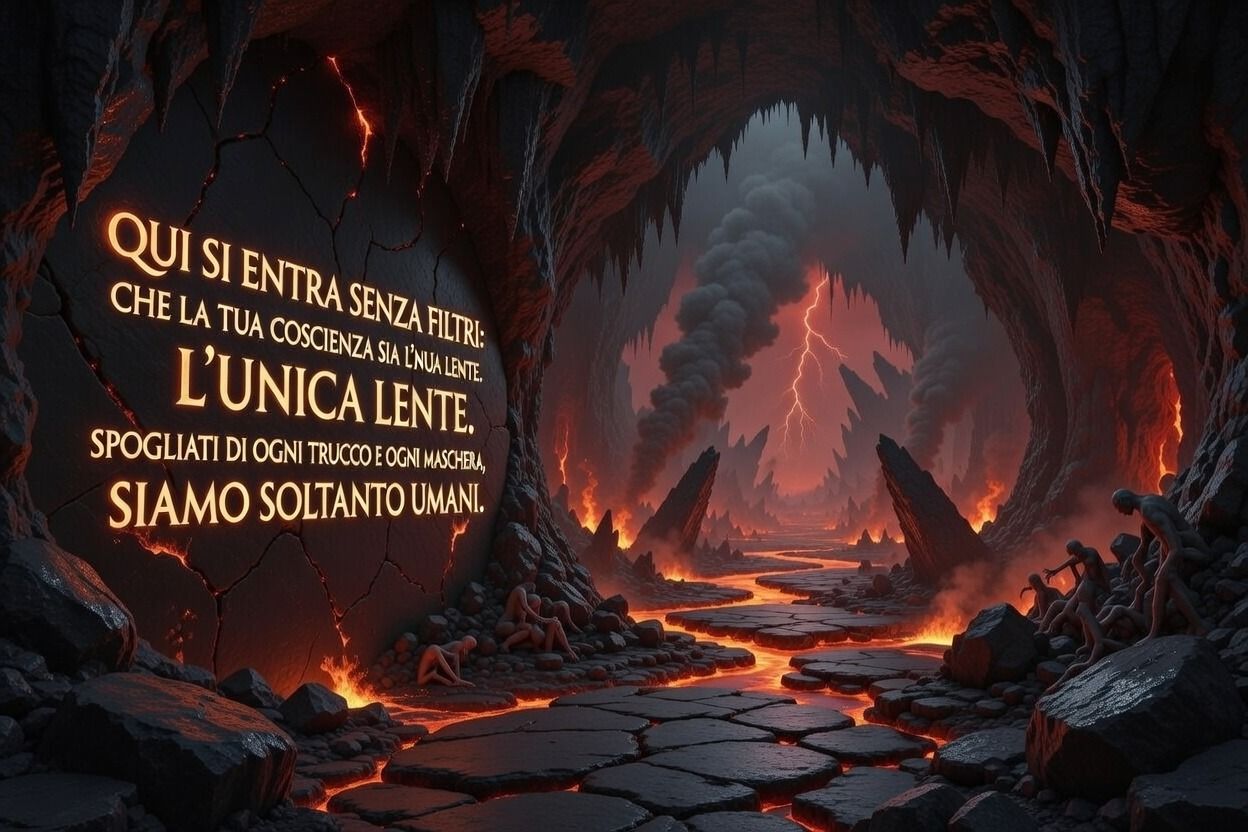 QUI SI ENTRA SENZA FILTRI: CHE LA TUA COSCIENZA SIA L'UNICA LENTE. SPOGLIATI DI OGNI TRUCCO E OGNI MASCHERA, SIAMO SOLTANTO UMANI.