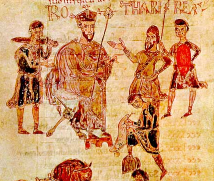 Il Re longobardo Rotari, raffigurato in un manoscritto