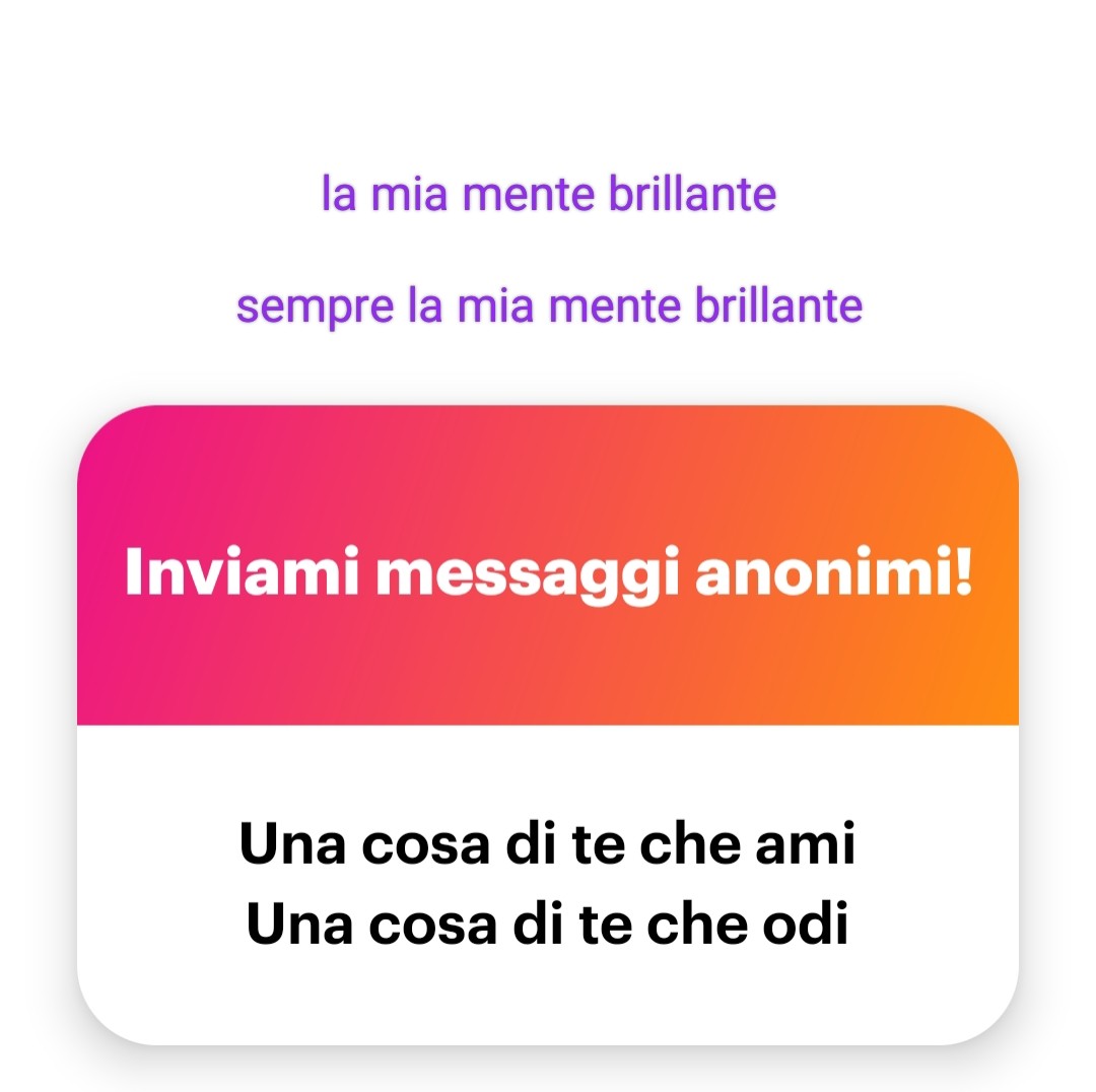 quella è la risposta "contratta" ahahah.amo il fatto di avere una mente che va sempre a fondo e trova significato alle cose intuitivamente, che vede sempre da un punto di vista più ampio e oggettivo possibile.